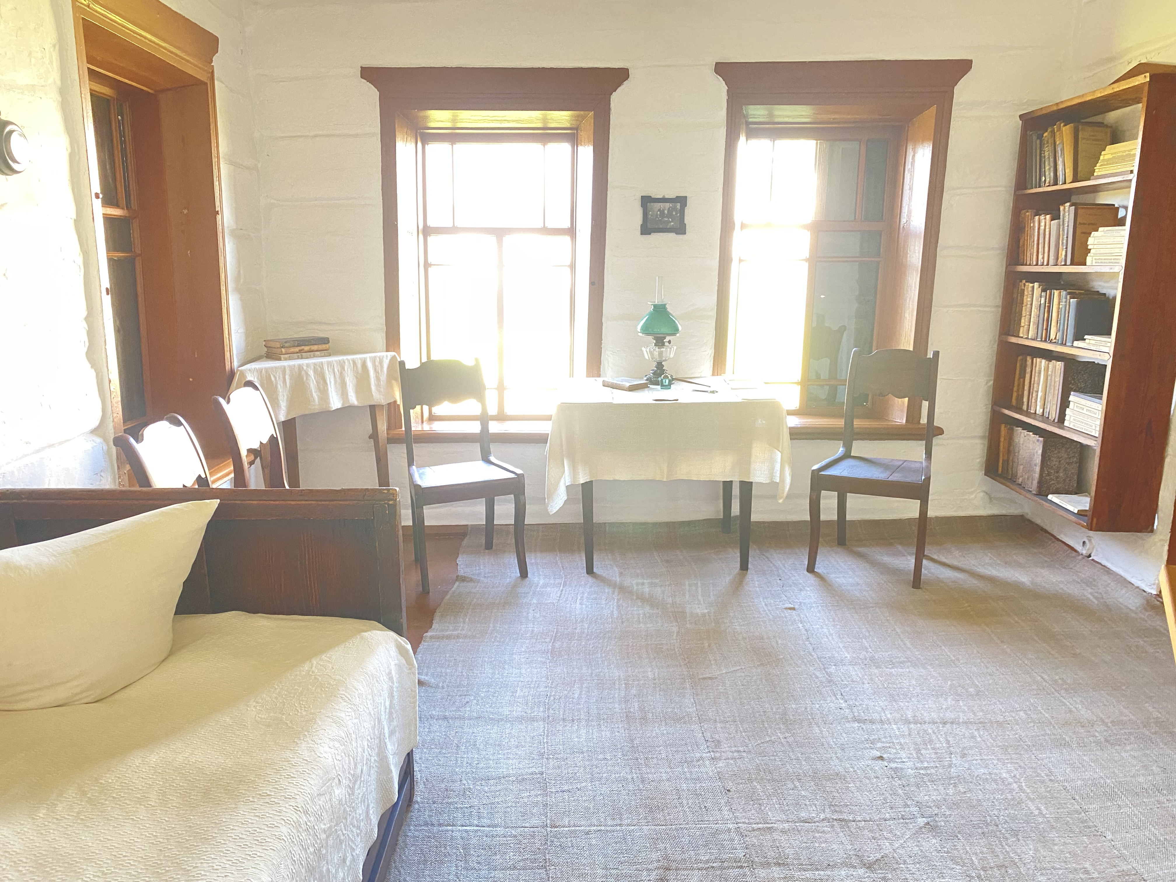 Ziyaretçileri ilk karşılayan, kırsal hayatın sessizliği, derin bir saygı içinde orijinaline sadık kalınarak restore edilmiş küçük bir ahşap ev: Lenin’in odası, kitapları, yazı masası ve karısı Krupskaya ile yaşadığı ortak alanlar... Her şey olduğu gibi korunmuş, sanki Vladimir İlyiç birazdan kapıyı açıp içeri girecekmiş gibi…