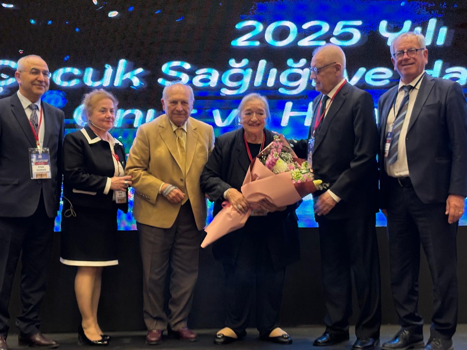 Prof. Dr. Ülker Öneş ve eşi Prof. Dr. Somer Öneş Türkiye Milli Pediatri Derneği ödül töreninde (2025)