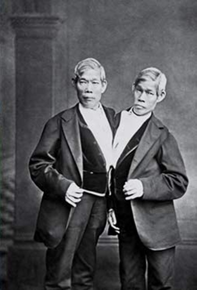 “Siyam ikizi” terimi, 1811’de Siyam’da (bugünkü Tayland) doğan Chang ve Eng Bunker kardeşlerden gelir. Bir İskoç tüccarın ilgisini çeken bu kardeşler, 1829’da bir denizciyle Amerika’ya götürülmüş ve “ucube gösterileri”nin yıldızları hâline getirilmişlerdir. 25 sent karşılığında halk, bu ikizleri sahnede izler, şaşkınlıkla alkışlardı. Kardeşler zamanla kendi şovlarını düzenleyip evlenmiş, toplamda 21 çocuk sahibi olmuşlardı. Sadece göğüs ve karaciğer kısmından bağlı oldukları bilinen Chang ve Eng’in, bugün modern cerrahiyle kolayca ayrılabilecekleri düşünülüyor.