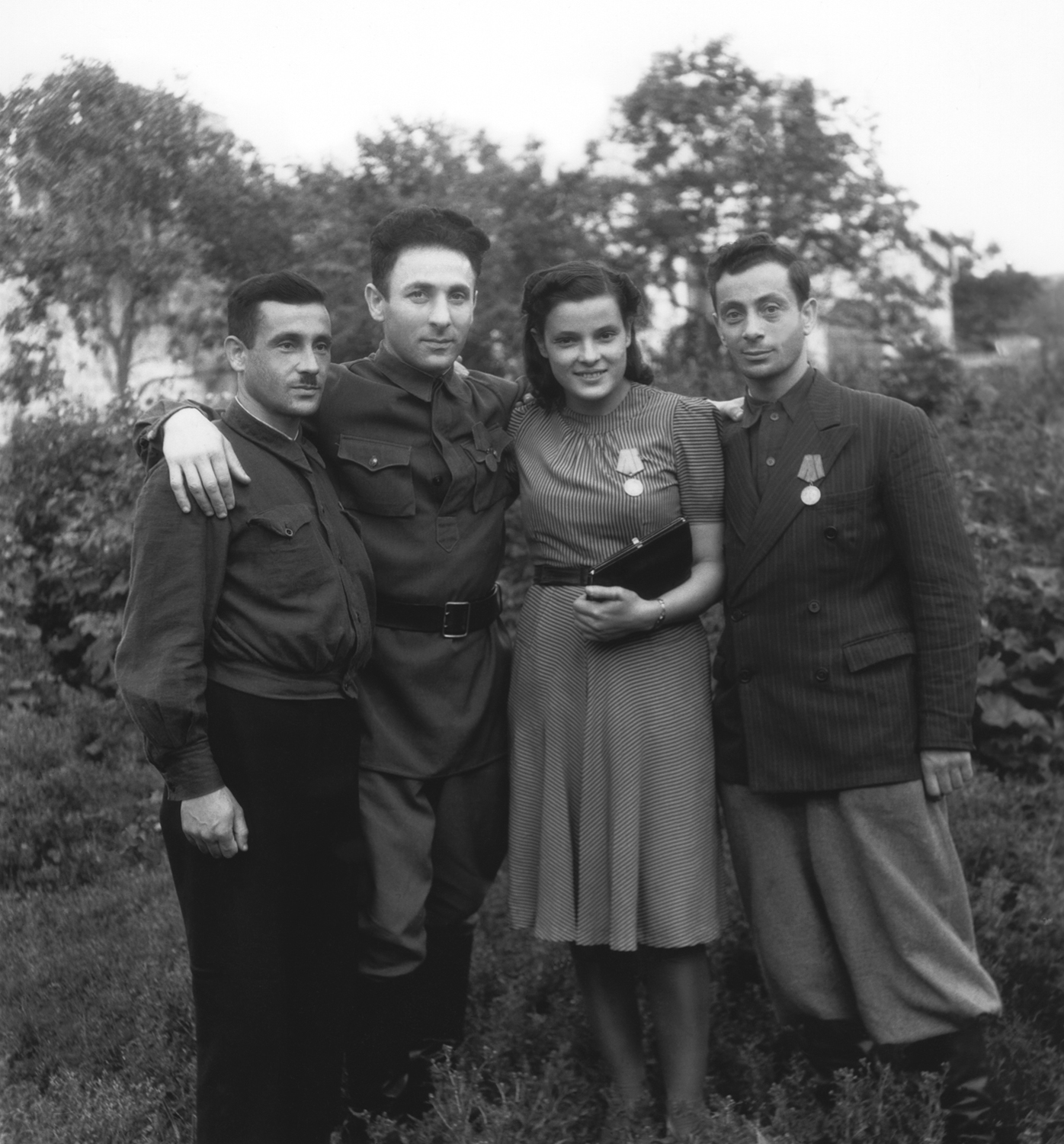 Faye, Morris Schulman ve iki kardeşi. Fotoğraf Faye Schulman Minsk yakınları, 1944 Sonbaharı