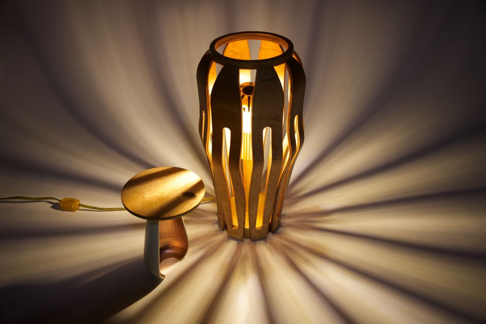 Gölge Table Lamp Kullanıcının ışık ve gölgeyi yönlendirebildiği bu masa lambası, mekânsal atmosferi etkileşimle şekillendiren deneyimsel bir aydınlatma nesnesidir