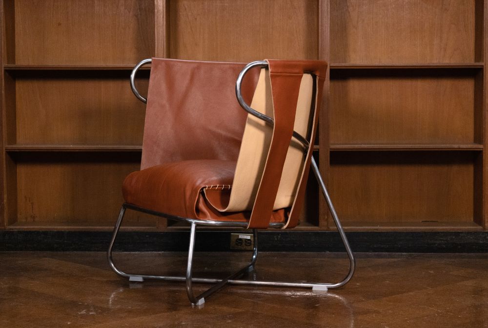 X-Tension Lounge Chair Islak şekillendirilmiş derinin yapısal potansiyelini araştıran bu lounge koltuk, metal karkasla bütünleşen yenilikçi bir üretim yaklaşımı sunar