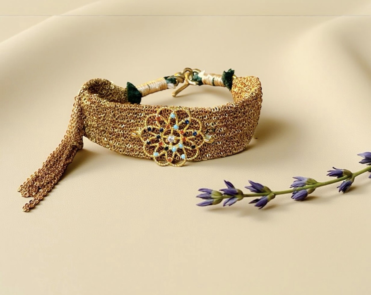 Dokuma sanatla teknolojinin ilk buluşması. Onu sevmemin nedeni bu: İnsanlığın hakikatle kurduğu en sıcak, en kalıcı bağ. Sevgi kumaşın sıcaklığında değil; devamında, emeğinde, biliminde, motiflerinde. Ben de kendi kasnağımda bu kadim sanatı sürdürerek, iple, zincirle, emek ve sevgiyle bilezikler dokuyorum… Kadının binlerce yıllık mirasını devam ettiriyorum…