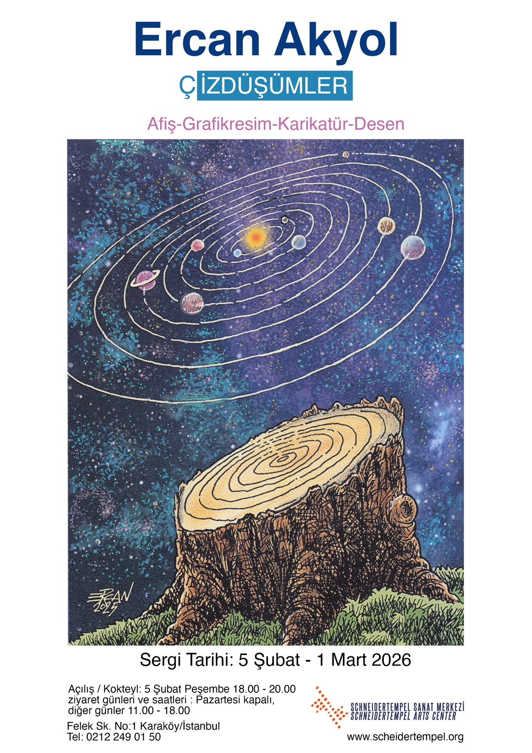 Ercan Akyol, Çizdüşümler başlıklı sergisiyle çalışmalarını sanatseverlerle buluşturuyor. 5 Şubat’ta Schneidertempel Sanat Merkezi’nde açılacak sergi, 1 Mart 2026’ya kadar ziyaret edilebilecek. Akyol, Çizdüşümler’i, “İzlenimlerimin ve düşündüklerimin belleğimden kâğıt yüzeyine izdüşümleri” olarak tanımlıyor.