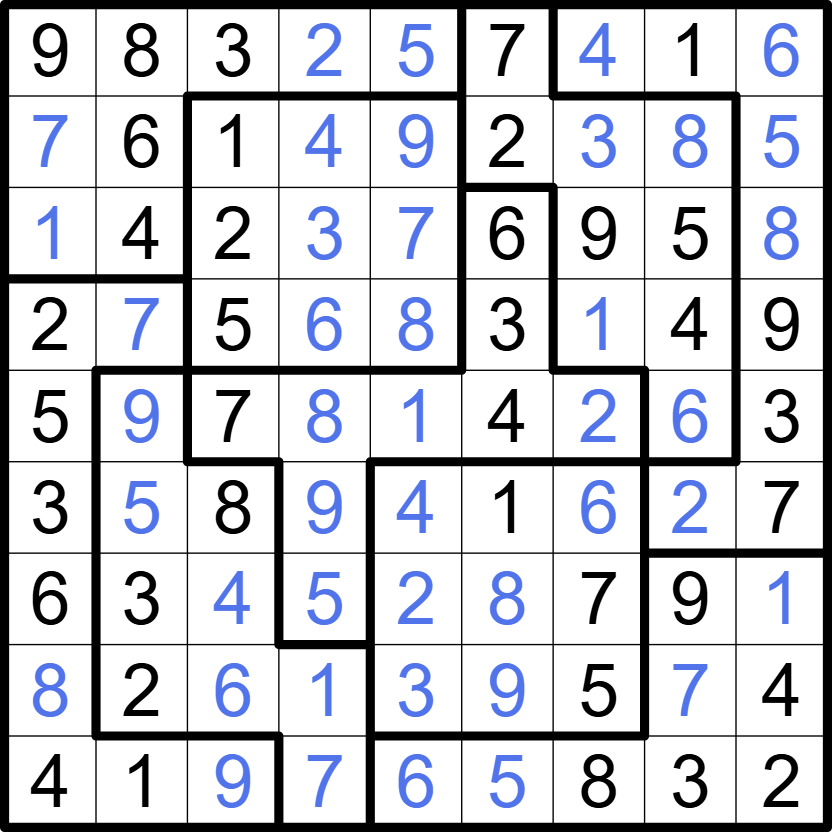 Yukarıdaki Bölgesel örnek Sudoku'nun çözümü: