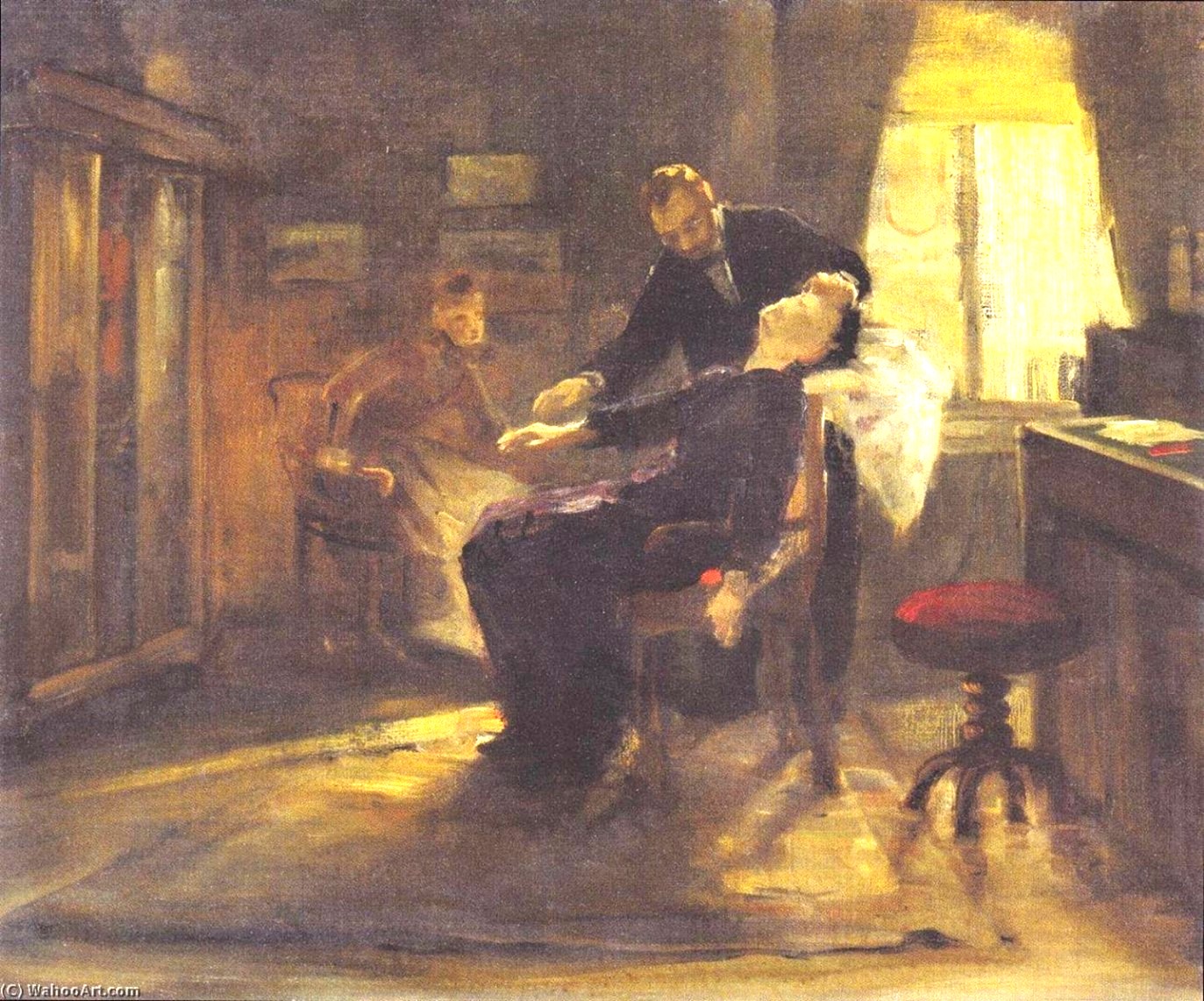 Hipnozun 19. yüzyılda popülaritesi artmıştı. (Albert von Keller - Hypnose bei Schrenck-Notzing – 1885)